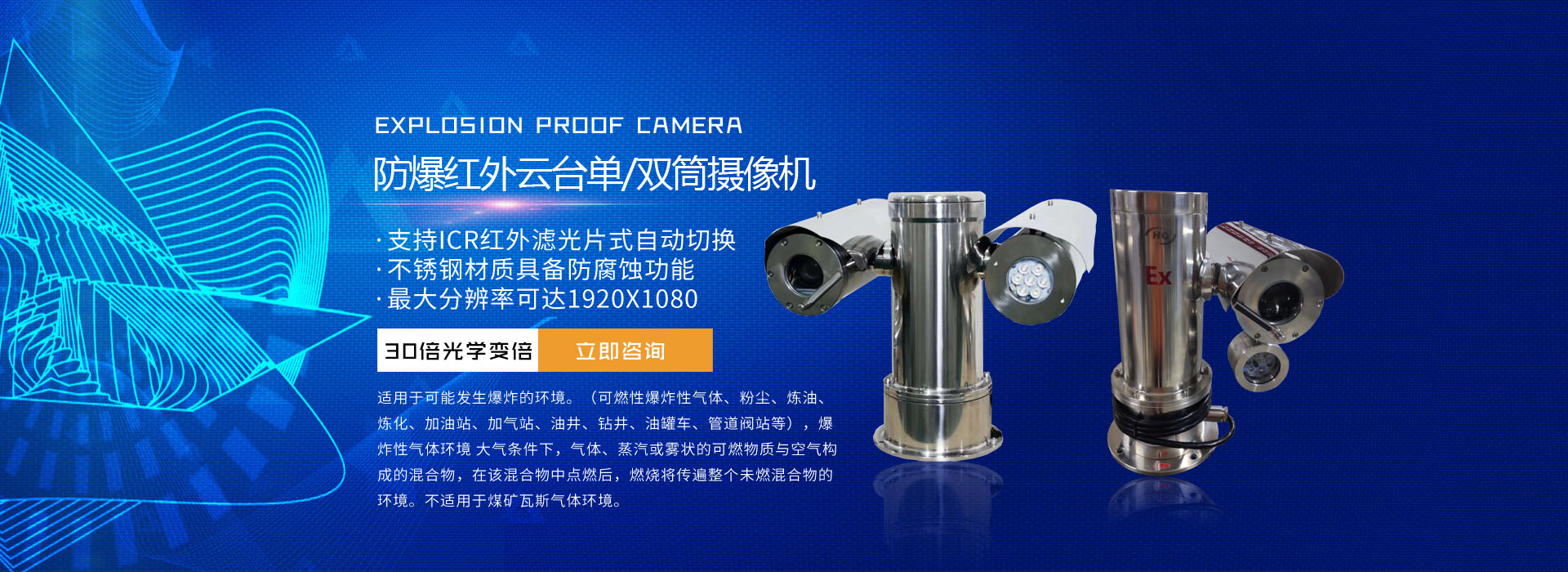 30倍-200萬防爆紅外高清智能云臺攝像機-【30倍-200萬】防爆標志:Ex d ⅡC T6 Gb/ExtD A21 IP68 T80℃;304.316不銹鋼材質具備防腐蝕功能;200萬像素 逐行掃描1/2.3”CMOS;******分辨率可達1280X960;30倍光學變倍,焦距為4.7-94mm